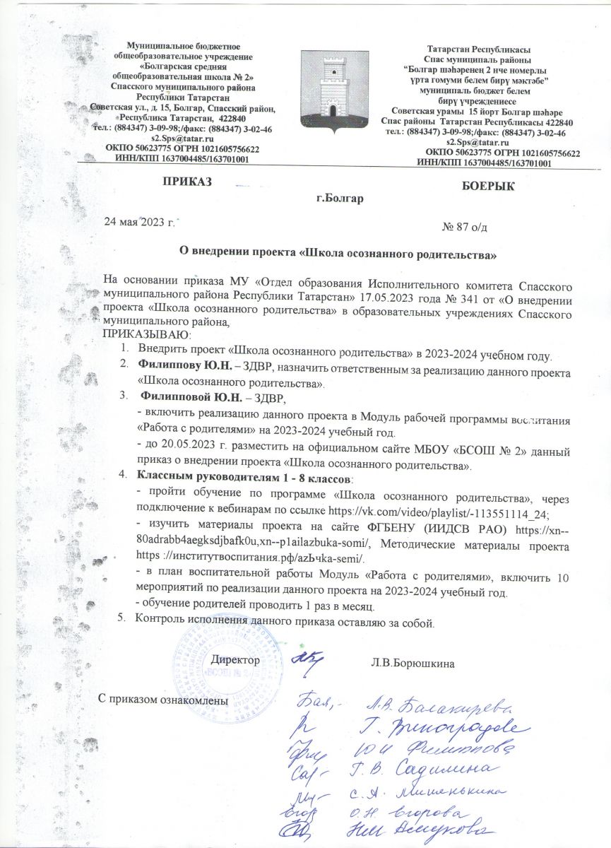 - Приказ Школа осознанного родительства