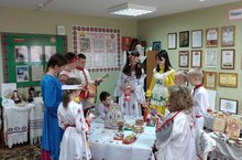 В преддверии праздника в чувашском фольклорном объединении «Сеспель» прошло мероприятие, посвященное этой дате. Воспитанники познакомились с историей возникновения праздника, подвигами наших предков во имя независимости Родины. Айсель познакомила ребят с символикой чувашской республики. Диляра и Настя рассказали про нашу республику, где в мире и в согласии проживают люди разных национальностей и вероисповеданий. Женя Фролов поделился о русских народных традициях.