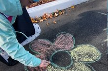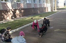 В рамках осенней недели добра дети 4 класса выполняли тематические рисунки на асфальте.