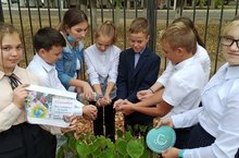 В память жертв Беслана воспитанники 1го и 6го классов набрали в ладони воду и полили цветы, тем самым напоив водой тех, кого уже нет с нами, кому так хотелось испить хотя бы каплю воды за эти страшных три дня.