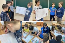 В 5 классе прошло занятие по внеурочной деятельности «Герой, на которого хочется быть похожим». Ребята читали отрывки литературных произведений, отгадывали названия и авторов, а так же выполняли творческую работу. Пытались вспомнить продолжения произведений, которые читали ранее. При оформлении творческой работы в группах, на фоне других, интересно получилось изобразить героя «Айболита». Ребята описали его внешность, характер, поступки, выделили положительные черты и нарисовали героя.