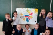 С первоклассниками шел разговор о том, что такое дружба, о ее роли в жизни каждого человека. Дети узнали, что голубь-это символ мира. Ребята сделали вывод: что жить надо дружно со всеми народами. Свое видение дружбы народов ребята выразили в творческой работе.