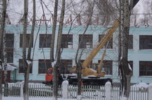 · Ремонт в школе начался с демонтажа труб, пола, кровли.