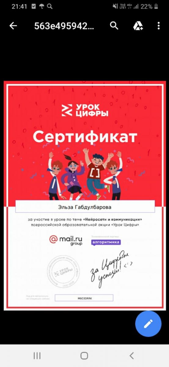 Обучающиеся нашей школы приняли участие во Всероссийской образовательной акции "Урок цифры" -2020.После прохождения теста получили сертификаты.