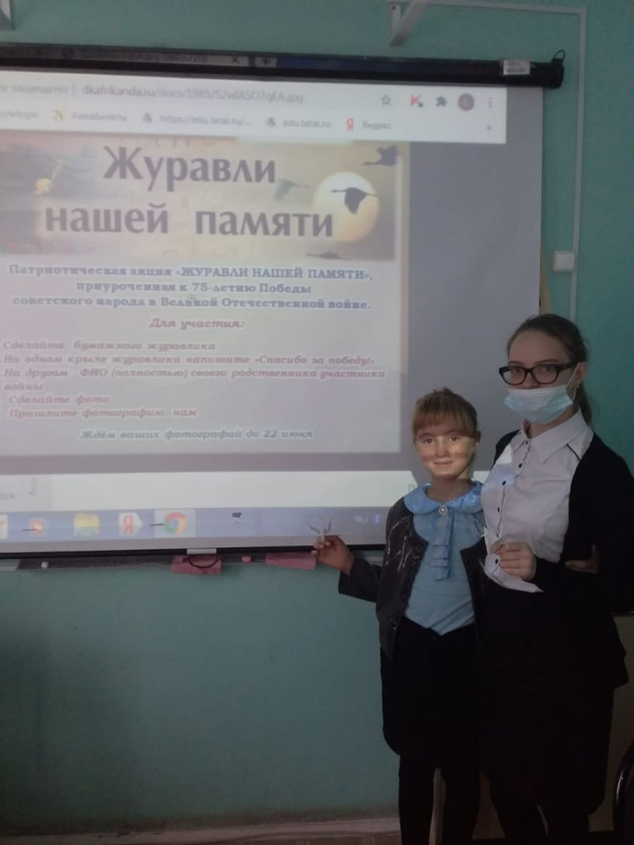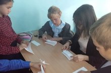Совет старшеклассников провели акцию «Журавль Памяти» с учащимися 5 класса. Белых бумажных журавликов оригами — символ мира —ребята смастерили своими руками.
