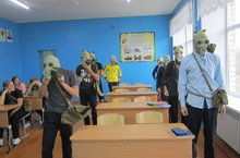 В рамках Месячника гражданской обороны и чрезвычайных ситуаций преподаватель ОБЖ Ермолаев В.В. провел практическое занятие с учащимися 9 класса по действиям в случае возникновения чрезвычайных ситуаций и порядку действий по сигналам гражданской обороны, с выдачей средств индивидуальной защиты.9 класс.JPG ГО 9 кл.JPG