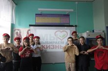Активист детского движения Киямова Эндже рассказала о волонтерском движении в нашей школе, о том, как работает отряд «Выбор». Рассказала, кто такие волонтеры, чем они занимаются. Вместе просмотрели фильм, зашли на сайт и заполнили анкету после просмотра фильма. Фильм просмотрели учащиеся с 5 по 11 классы.