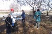 В рамках санитарно-экологического двухмесячника по очистке территорий населенных пунктов, учащиеся начальных классов 9 апреля убирали территорию около памятника.