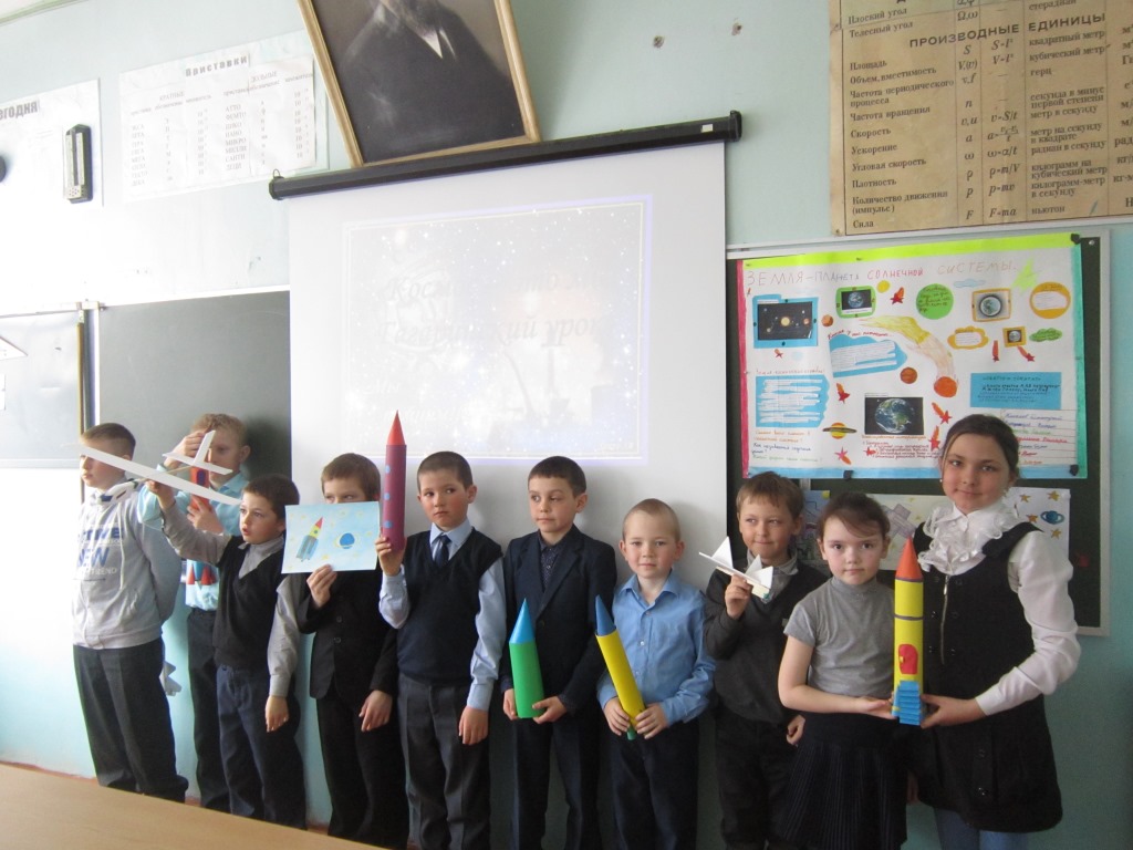 В начальных классов прошёл «Гагаринский урок «Космос-это мы». История развития отечественной космонавтики вызывает чувство гордости за нашу страну. 12 апреля 1961 года 58 лет назад впервые в мире наш соотечественник Юрий Алексеевич Гагарин достиг орбиты Земли. Наши ученики на уроке побывали виртуально в космосе, изготовили и запустили свои космические ракеты и самолёты, нарисовали рисунки. А в конце мероприятия дружно ответили на вопросы викторины.