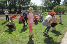 После обеда для детей было организовано мероприятие под названием «Интеллектуальная ромашка». С небольшим отрывом победил отряд «Энергия»./кто быстрее.JPG