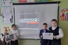 Для 5 и 6 класса был проведён классный час «Памяти жертв холокоста» , дети долго не расходились после классного часа под впечатлением услышанного и увиденного, продолжали беседу и приводили другие примеры из жизни современного общества. Познакомились с новыми понятиями: холокост, гипоксия, карцер и другие.