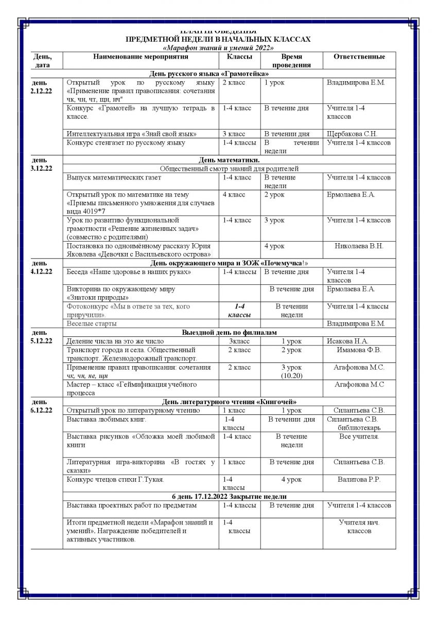 В период с 12 декабря по 17 декабря в школе проходит неделя начальных классов "Марафон знаний и умений 2022". Девиз недели: "Решать! Искать! Творить! Мечтать!".