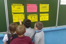 Классный руководитель рассказала первоклассникам о том, что осенний лед в период с ноября по декабрь, то есть до наступления устойчивых морозов, непрочен. Скрепленный вечерним или ночным холодом, он еще способен выдерживать небольшую нагрузку, но днем, быстро нагреваясь от плюсовой температуры, становится пористым и очень слабым, хотя сохраняет достаточную толщину. Но нельзя забывать о серьезной опасности, которую таят в себе только что замерзшие водоемы. Ребята разукрасили иллюстрации и каждый рассказал о ситуации, которая изображена на картинке.