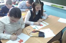 В преддверии праздника Дня Победы учащиеся начальных классов в группе продленного дня учились рисовать звезду. Данное задание способствовало развитию воображения, эстетического восприятия, умение создавать композицию, самостоятельно подбирать цветовую гамму, соответствующую задуманному сюжету.Җиңү көне алдыннан башлангыч сыйныф укучылары озынайтылган көн төркемендә йолдыз ясарга өйрәнделәр. Әлеге бирем балаларда эстетик тәрбия бирү, композиция ясау, уйланган сюжетка туры килә торган төсләр гаммасын мөстәкыйль сайлау мөмкинлеге бирде. Бөтенхалык бәйрәме "Җиңү көне",гореф-гадәтләр турында белемнәрен ныгыттылар. -