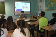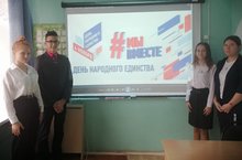 4 ноября вся Россия отмечает «День Народного Единства». Накануне праздника в 9 классе проведен тематический урок ,посвященные этой дате. В ходе мероприятий учащиеся в доступной форме познакомились с историей возникновения праздника, подвигами наших предков во имя независимости Родины, посмотрели видеоурок. На урок был приглашен учитель истории Галеев Р.Х,, он провел небольшую викторину: где учащиеся вспомнили о том, как велика и красива наша Родина, как богата событиями её история, закрепили свои знания о государственных символах.