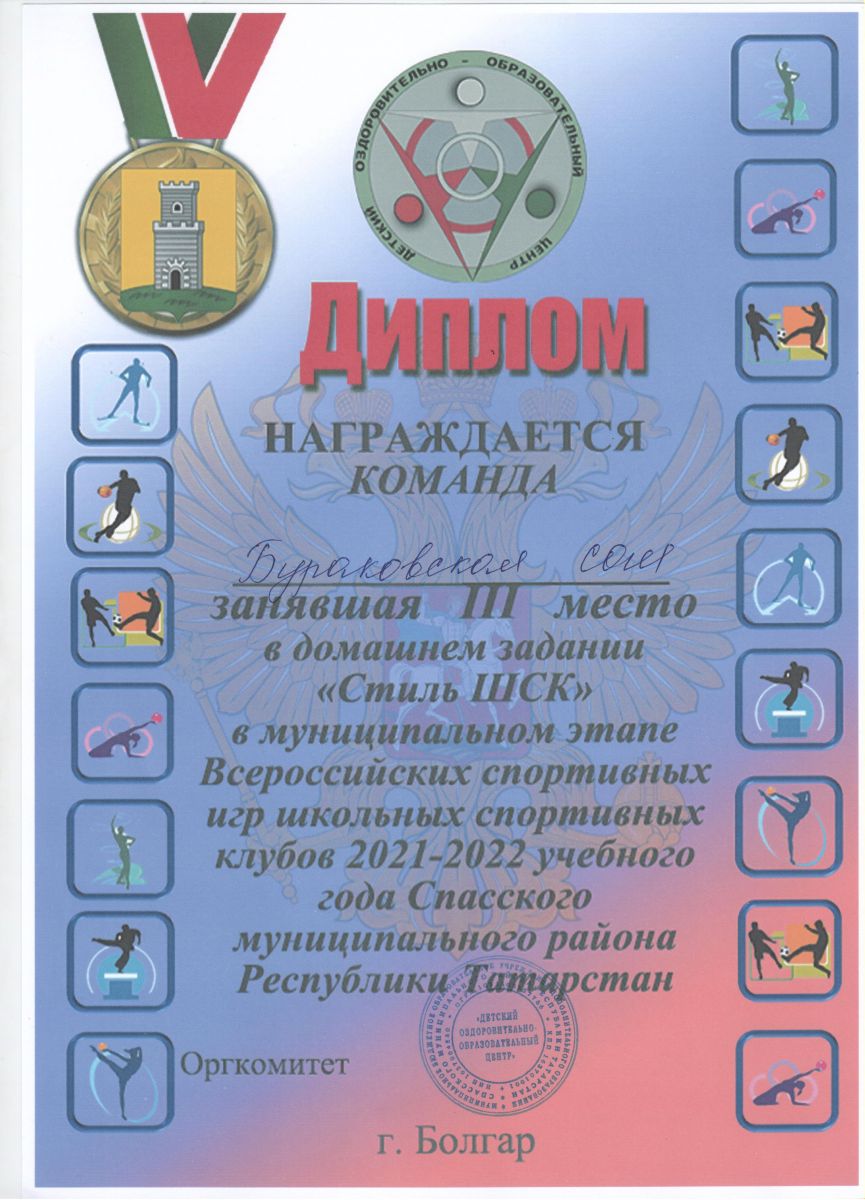 муниципальное бюджетное общеобразовательное учреждение «Бураковская средняя общеобразовательная школа Спасского муниципального района РТ" / "Татарстан Республикасы Спас муниципаль районы Бураково урта гомуми белем бирү мәктәбе" муниципаль бюджет гомуми белем бирү учреждениесе