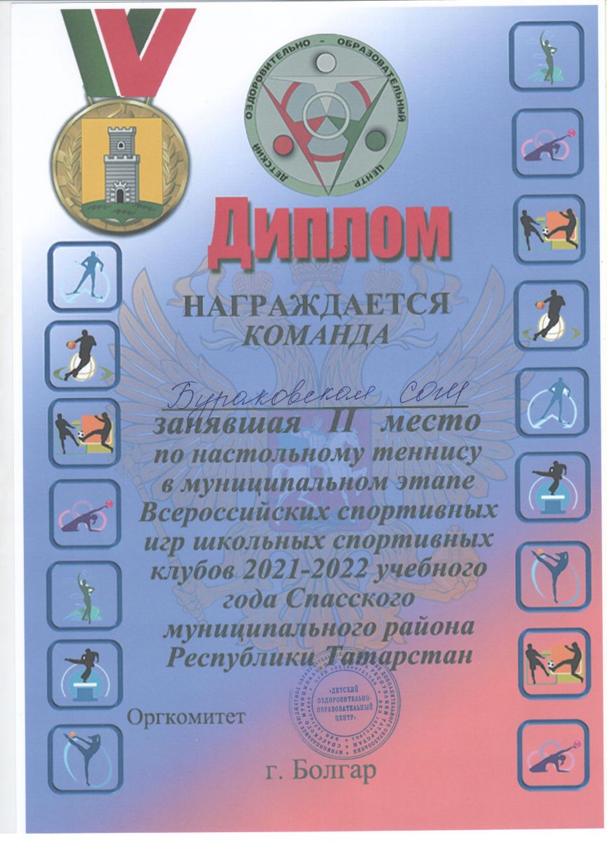 | Короткое название: | МБОУ "Бураковская СОШ" |