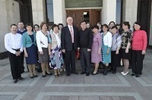 20 нче апрель көнне мәктәбебезнең укытучылары мәркәзебез Казанга, педагогика фәннэре докторы, профессор, РАГН академигы, Россиянең hэм Татарстаннның атказанган укытучысы, Татарстанның атказанган фән эшлеклесе, Россия Федерациясенең югары профессиональ белем бирү тармагының атказанган хезмэткәре, Татарстан Республикасының Каюм Насыйри, Муса Жэлил, Дамир Сиражиев исемендәге дәүләт премияләре лауреаты, галим-новатор Хуҗиәхмәтов Әнвәр Нуриәхмәт улы чакыруы буенча, Г. Камал исемендәге татар дәүләт академия театрына, Карло Гоцциның “Хан кызы Турандык”драмасын карарга бардык.