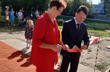 Улыбки маленьких кимовцев стали главным доказательством, что сделано хорошее дело. Демьянов Е.А. вместе с заведующей Булановой Н.Н., разрезали красную ленточку. после чего главные виновники торжества - малыши, могли зайти в отремонтированный "второй дом".