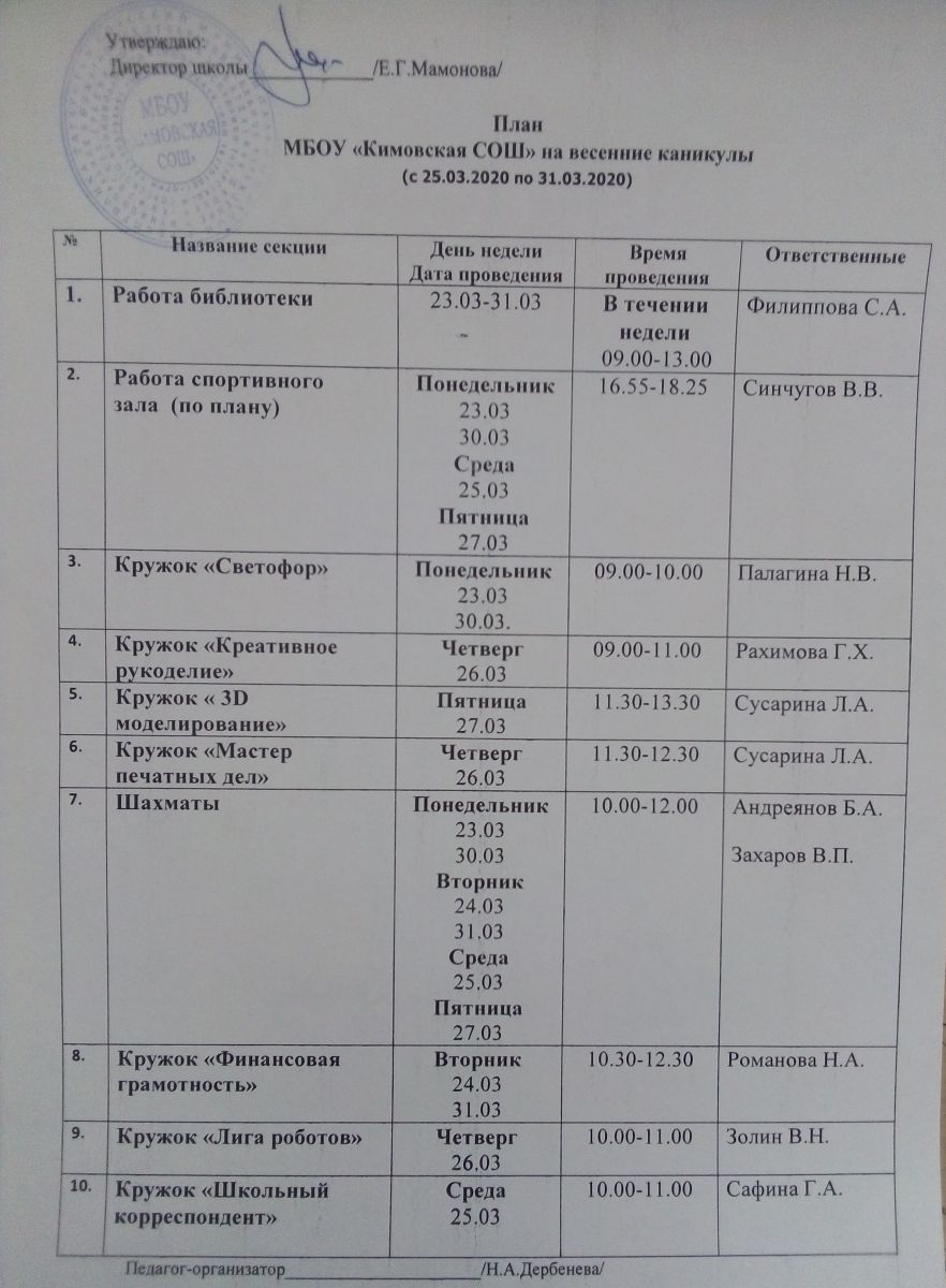 - План на весенние каникулы 17.03.2020