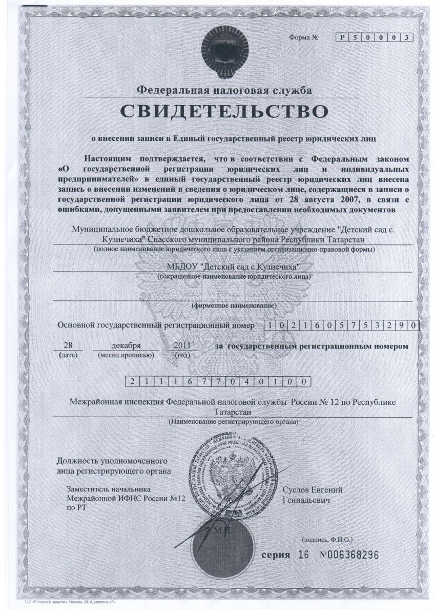 Муниципальное бюджетное образовательное учреждение "Детский сад с.Кузнечиха" Спасского муниципального района Республики Татарстан /Татарстан Республикасы Спас муниципаль районы "Кузнечиха авылы балалар бакчасы" муниципаль бюджет мәктәпкәчә белем биру учреждениесе