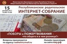 15 декабря с 12.00 до 13.30 на сайте киу.рф состоится онлайн-трансляция Республиканского родительского Интернет-собрания по теме "Поборы и пожертовования - что общего и в чем разница?"
