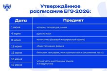 Уважаемые родители выпускников 9-х и 11-х классов! Утверждено единое расписание государственной итоговой аттестации на 2026 год. Соответствующие приказы уже опубликованы: ➡️ЕГЭ: vk.cc/cS6tAu ➡️ОГЭ: vk.cc/cS6tyq Также в приказах можно узнать о продолжительности экзаменов по каждому учебному предмету и о разрешенных к использованию средствах обучения. Подробности — в карточках от Минпросвещения России. 18.12.2025