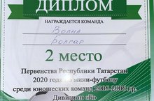 11-12.12.2020 года на базе МБУ "СШ "Олимп" прошли соревнования:финал Первенства РТ по мини-футболу 2020 года среди юношеских команд 2005-2006 г.р.. В соревнованиях участвовало 12 команд, Команда "Волна" Спасского района заняла призовое 2 место. Поздравляем ребят!