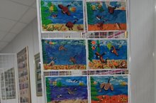 В фойе Болгарской школы искусств, учащиеся художественного отделения подготовили выставку. Дети нарисовали иллюстрации "Золотая осень".