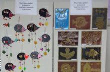 В конце I четверти в фойе школы была организована выставка работ учащихся 2-3 кл. (8-9 лет), художественного отделения.Выставка разнообразна по сюжету и материалам исполнения: здесь и веселые улитки (фасоль и горох), работы из макаронных изделий, подвески «ежи» (соленое тесто) и рельеф на тарелочках (пластилин).Дети постарались показать свое мастерство и поделились творчеством. Выставка расположилась прямо напротив входа в школу, даря радость и вдохновение всем входящим.