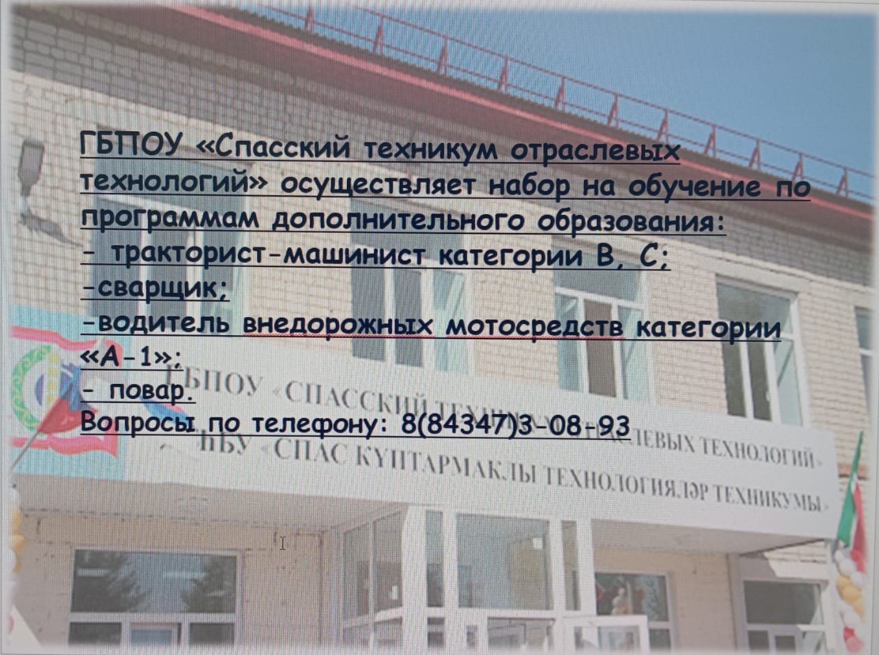 Государственное бюджетное профессиональное образовательное учреждение "Спасский техникум отраслевых технологий"/"Спас тармак технологияләре техникумы "дәүләт бюджет һөнәри белем бирү учреждениесе" - новости