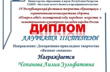 Лилия стала лауреатом 3 степени в направлении: Декоративно-прикладное творчество «Вязание спицами».