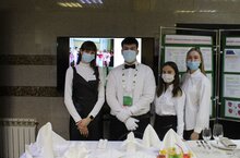 На выставке они представили вариант праздничной сервировки стола в стиле "Природные мотивы", провели мастер-класс по сворачиванию салфеток разными способами , показали презентацию достижений педагогов и студентов. -