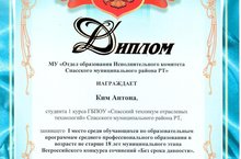 Дипломом за 1 место награжден Ким Антон, студент группы 21711 по профессии «Тракторист-машинист Спасского техникума сельскохозяйственного производства». Антон принял участие в муниципальном этапе Всероссийского конкурса сочинений «Без срока давности», который проходил 24 февраля 2022 года. Теперь Антону предстоит участие в республиканском этапе данного конкурса. Подготовила студента преподаватель истории Халиуллина Рания Рамилевна.