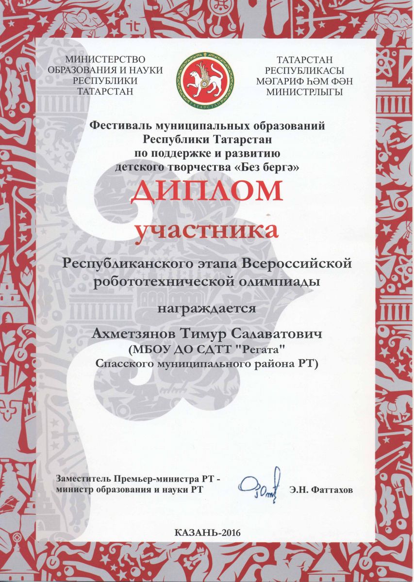 Муниципальное бюджетное образовательное учреждение дополнительного образования «Станция детского (юношеского) технического творчества «РЕГАТА»» Спасского муниципального района Республики Татарстан /Татарстан Республикасы Спас муниципаль районының өстәмә белем бирүче «РЕГАТА» балалар (яшүсмерләр) техник иҗат станциясе» муниципаль бюджет учреждениесе.
