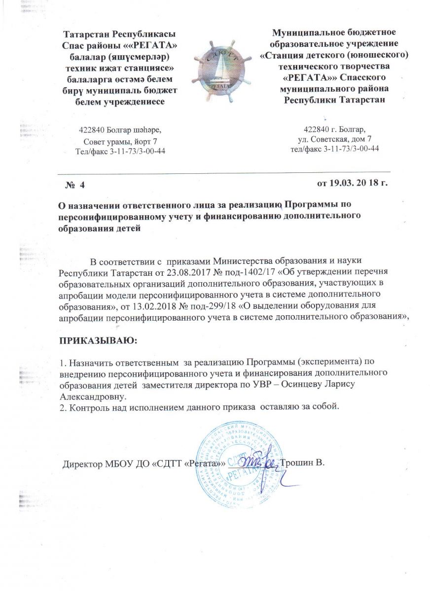 Муниципальное бюджетное образовательное учреждение дополнительного образования «Станция детского (юношеского) технического творчества «РЕГАТА»» Спасского муниципального района Республики Татарстан /Татарстан Республикасы Спас муниципаль районының өстәмә белем бирүче «РЕГАТА» балалар (яшүсмерләр) техник иҗат станциясе» муниципаль бюджет учреждениесе.