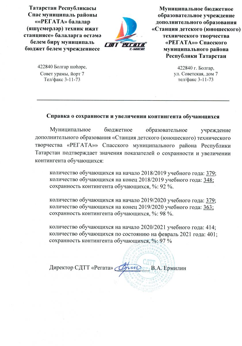Муниципальное бюджетное образовательное учреждение дополнительного образования «Станция детского (юношеского) технического творчества «РЕГАТА»» Спасского муниципального района Республики Татарстан /Татарстан Республикасы Спас муниципаль районының өстәмә белем бирүче «РЕГАТА» балалар (яшүсмерләр) техник иҗат станциясе» муниципаль бюджет учреждениесе.