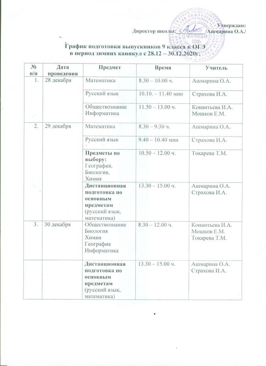 График консультаций по подготовке к экзаменам на зимние каникулы 22.12.2020