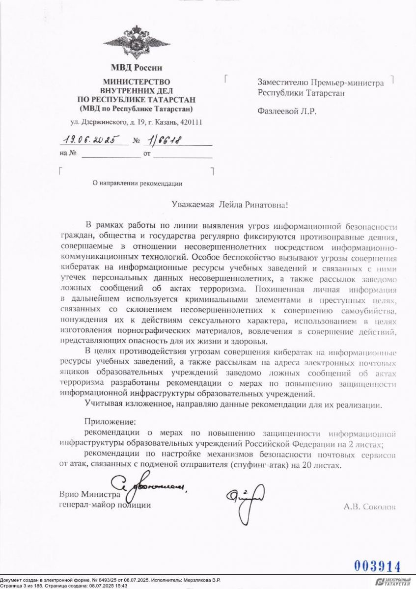 О направлении рекомендаций о мерах по повышению защищенности информационной инфраструктуры