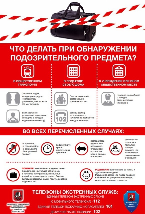 Памятка: Что делать при обнаружении подозрительного предмета