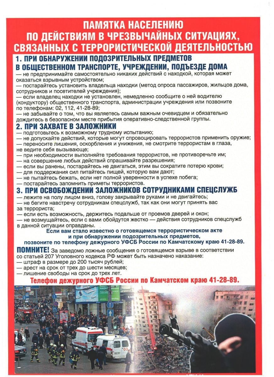 Памятка действия в ЧС, связанных с террористической деятельностью