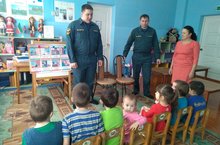 На встречу с детьми приехали пожарные, несущие службу в пожарной части села Антоновка. Встреча прошла в теплой дружеской атмосфере. Дети с интересом участвовали в беседе, задавали вопросы, примеряли пожарный шлем. Беседа была полезной, дети получали очень много информации. В конце встечи читали стихи про службу и героизм пожарных.