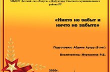 В старшей и подготовительной подгруппах была организована проектная работа "Никто не забыт, ничто не забыто". Участниками проекта стали воспитанники, их родители и воспитатель. Цель проекта: формирование дошкольников гражданской позиции, патриотических чувств, любви к Родине на основе расширения представлений детей о победе защитников отечества в Великой Отечественной войне, о вкладе жителей родного села в победу нашего Отечества над захватчиками.
