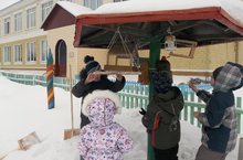 "Кыш көне кошларны яклыйк" акциясендә без дә катнаштык. Әтиләребез, дәү әтиләребез җимлекләр ясадылар. Без аларны бакчабыз мәйданчыгында элеп куйдык, кошларга җимнәр салдык.