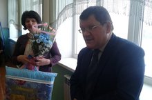 Сегодня в школе прошло чествование юбиляра. Директор школы Гарифуллин В.Ю. сердечно поздравил юбиляра, пожелал крепкого здоровья, успехов, вручил грамоту отдела образования и подарки профсоюзного комитета работников образования.