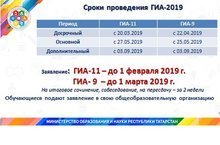 Основной перод ГИА-11 с 27.05.2019; ГИА-9 с 25.05.2019.