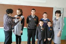 Сегодня учащиеся 7 класса (кл. руководитель Мингалиева М.М.) провели акцию "Георгиевская ленточка" в 1 классе.