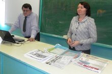 В рамках плана школы по профориентационной работе состоялась встреча учащихся 9 - 11 классов с преподавателем ИЗУП г. Казани Хамидуллиной Ф.Р. Прежде всего она рассказала об учебном заведении, об услових поступления, о студенческой жизни, отвечала на вопросы учащихся.