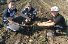 Сегодня учащиеся 5 - 11 классов произвели уборку картофеля на пришкольном участке на площади 0.6 га.