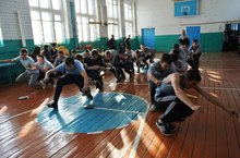 В течении 2-х дней юноши 9 -11 классов школы соревновались между собой по разнообразным видам состязаний. Это и конкурсы, эстафеты, смотр строя и песни, это и чисто силовые упражнения. Всего участвовали 24 человека, разделенные на 3 команды.